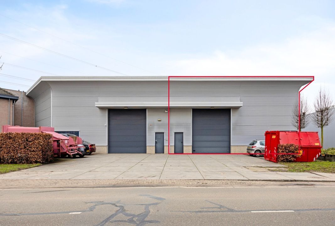 Aan de voor- en zijkant beschikt het object over twee overheaddeuren, een royale vrije hoogte en strakke afwerking.